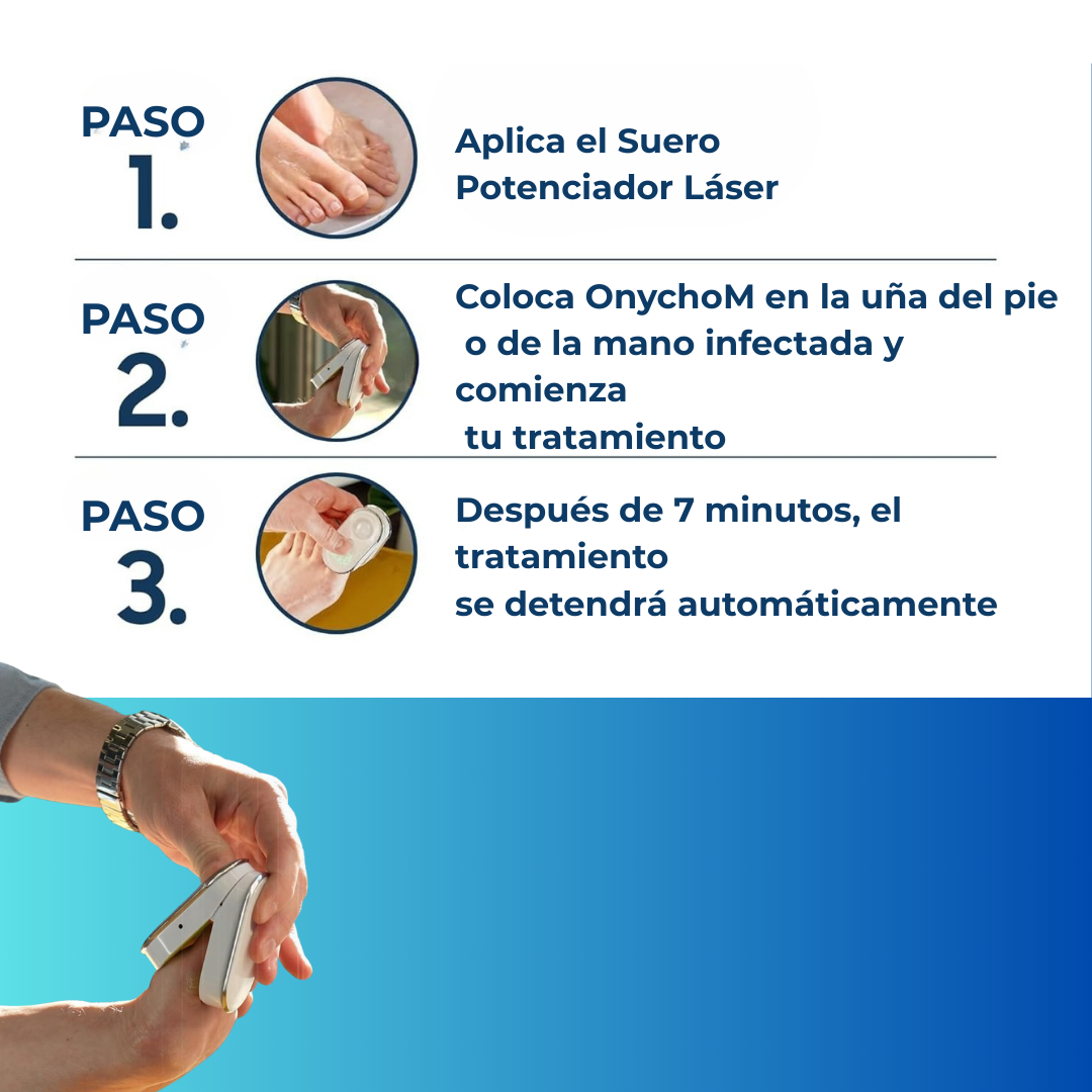 Se recomienda usar el dispositivo entre 7 y 15 minutos por sesión, una o dos veces al día. Los resultados comienzan a notarse a partir de las 4 a 6 semanas, dependiendo del grado de infección y del crecimiento natural de la uña.