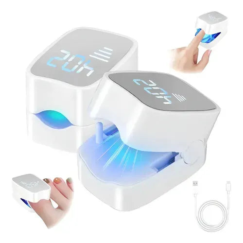 El dispositivo utiliza luz láser y LED azul de baja intensidad que penetran suavemente la uña, ayudando a eliminar los hongos desde la raíz sin causar dolor ni calor excesivo. Revitaliza el tejido y favorece el crecimiento de una uña saludable.
